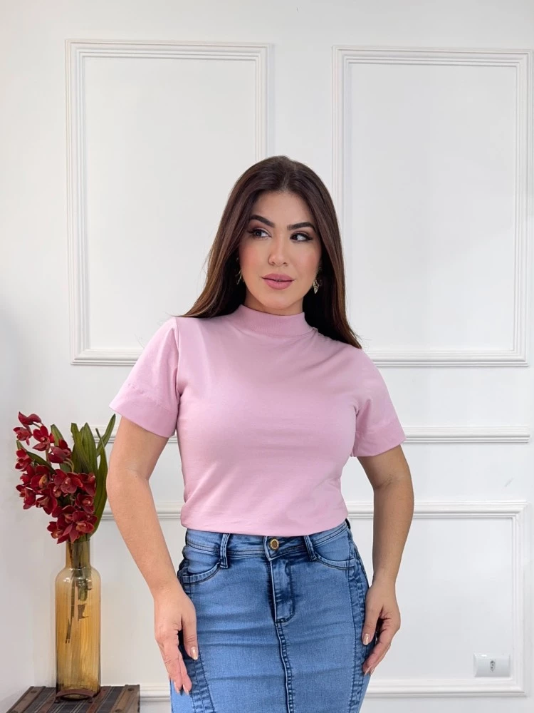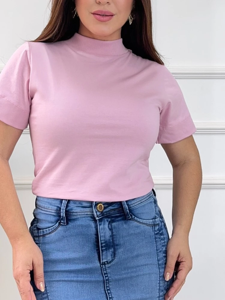 T-SHIRT GOLA ALTA LISA - ROSA SECO
