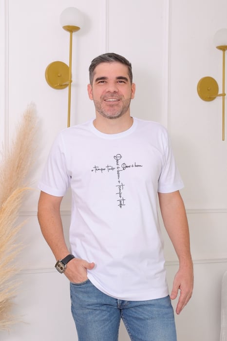 CAMISETA MASCULINA DEUS É BOM O TEMPO TODO