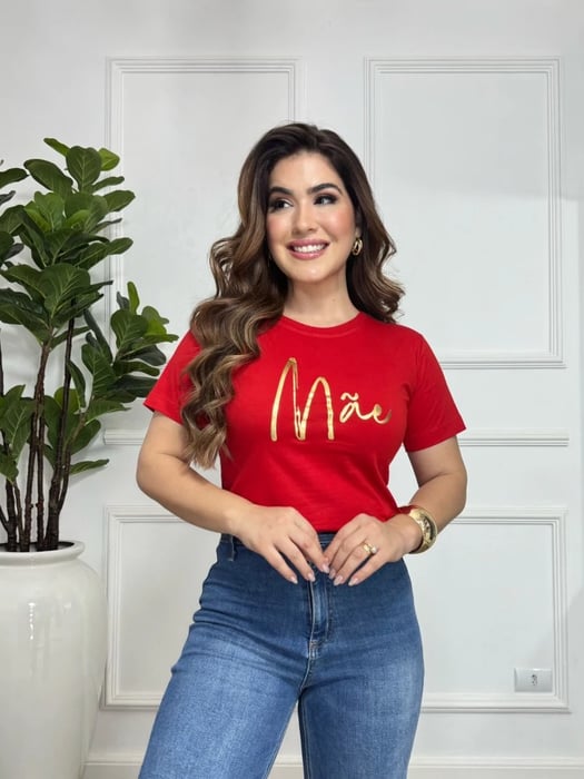 T-SHIRT PREMIUM MÃE COM DETALHE DOURADO
