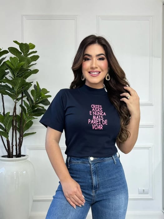 T-SHIRT GOLA ALTA CRIEI ASAS E NUNCA MAIS PAREI DE VOAR