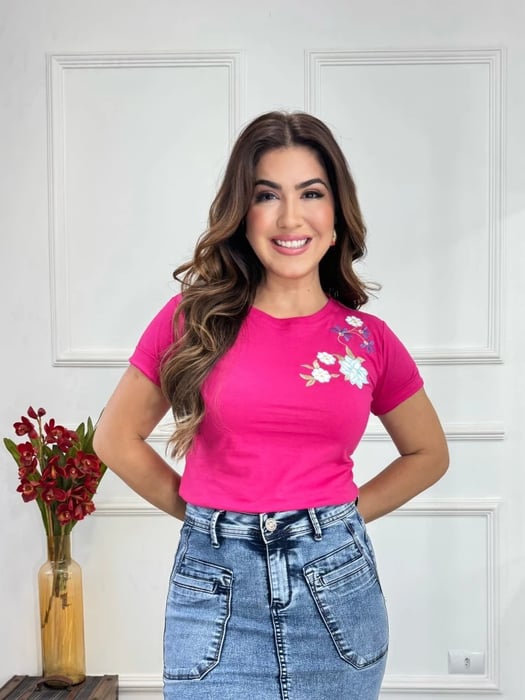 BORDADA PREMIUM FLORES NO CANTO DO PEITO