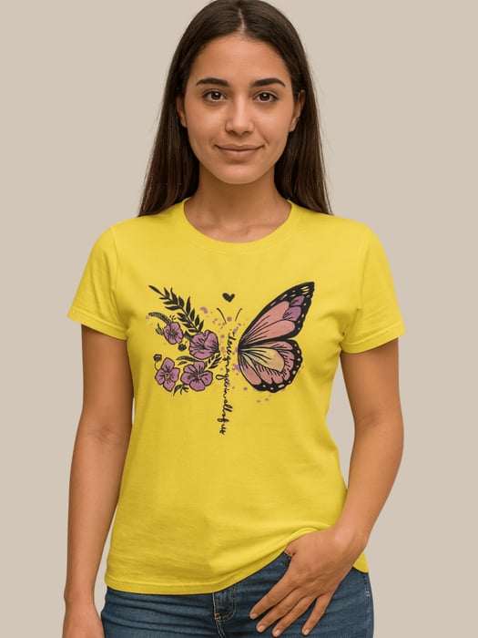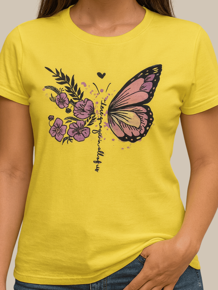 T-SHIRT PREMIUM BORBOLETA COM FLORES